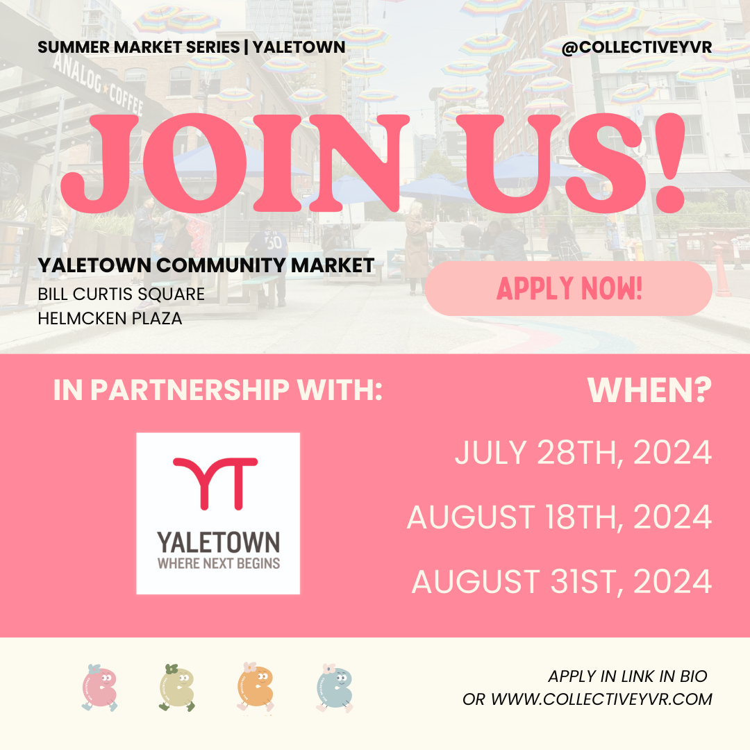 Don’t miss this opportunity to be part of an exciting event in one of Vancouver’s most beloved neighborhoods. Apply now to secure your spot and showcase your creation and brand in Yaletown’s vibrant community!